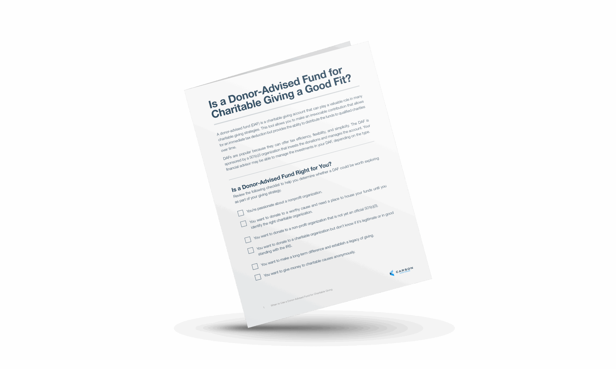 A donor-advised fund (DAF) is a charitable giving account that can play a valuable role in a charitable giving strategy—popular for its tax efficiency, flexibility, and simplicity. This resource can help you determine if a DAF could be worth considering as a useful addition to your overall …
